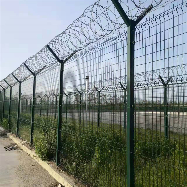 機場護欄網,我們稱之為"Y型柱”護欄網,通俗叫法有機場圍網、機場隔離網。是機場邊界的重要保護措施、防攀爬能力強,有效防止人為破壞性拆卸和對機場設施的破壞,保證機場安全,讓飛機起飛更加順利。主要用于機場封閉、監獄防護、軍事重地、開發區隔離等高安全場所。