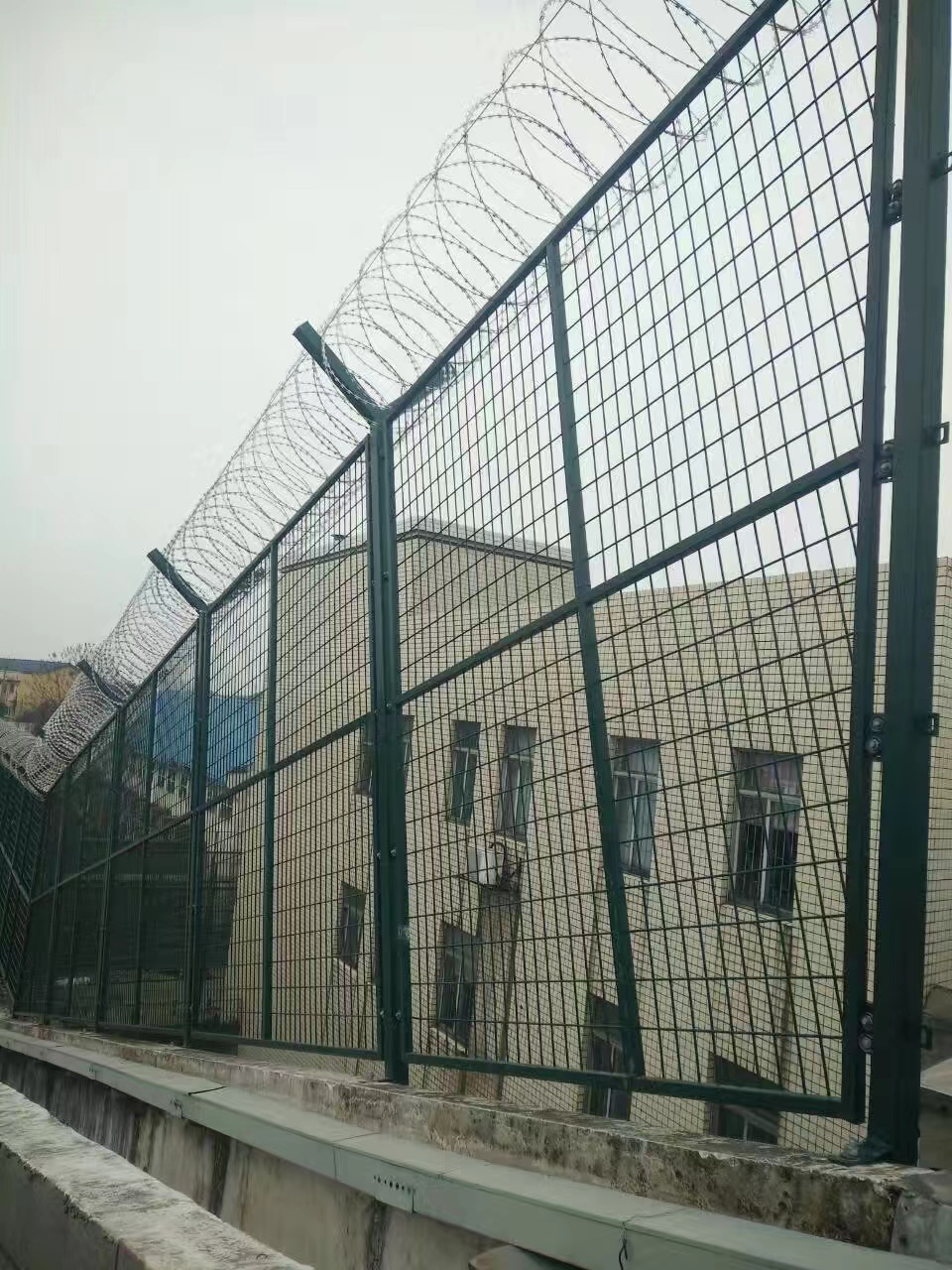 監獄防護網(監獄鐵絲網)具有堅固耐用、美觀大方、鋒銳利、防攀爬、抗強風、抗沖擊、抗剪切、抗腐蝕等優異特點。用途:監獄鋼網墻主要用于監獄、看守所、拘留所.戒毒所、軍事禁區、邊防線等高安全場所。