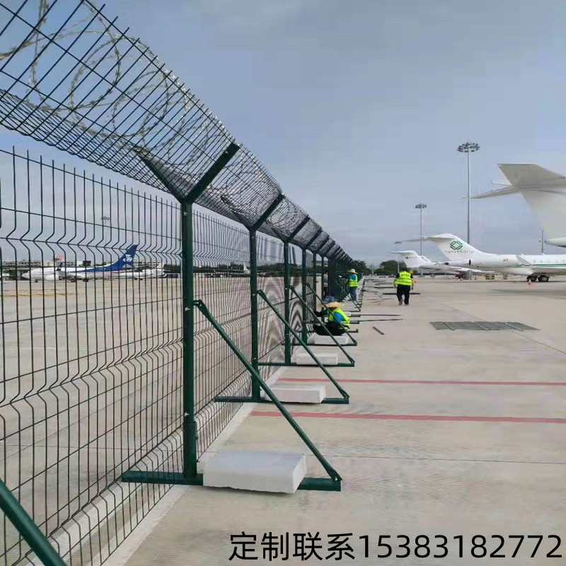 機場圍界網通常采用Y字型立柱,這種造型是為了方便在頂部架設刀片刺網,這種組合模式可以大大提高機場圍界網的安全防護性能。