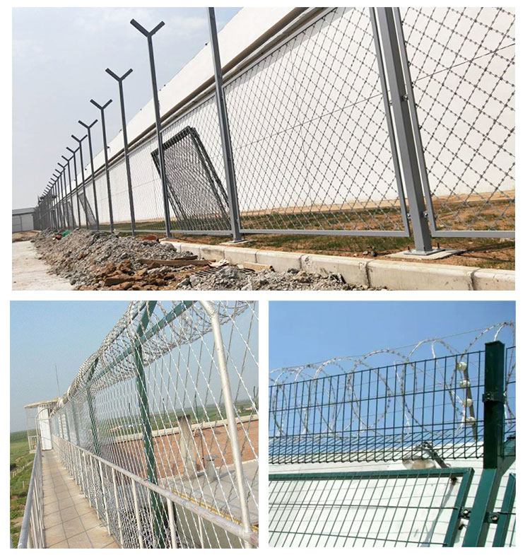 監獄高墻防護網監獄監舍防護網監獄放風場圍網,戒毒所看守所監獄隔離網一般是由Y型立柱和加強型網片而組成,上面安裝50、60或者80公分的刀刺滾籠,安全防御級別很高, 被廣泛應用于戒毒所、看守所、監獄、軍事基地等高安全場所。