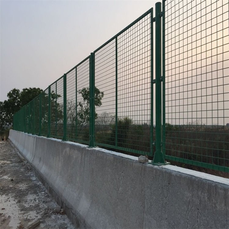 2、焊接網式橋梁防拋網,焊接網式雙圈護欄網是用冷拔低碳鋼絲焊接成網筒狀卷邊與網面一體,采用鍍鋅進行防腐處理,具有很強的耐腐蝕性,然后進行噴、浸塑,各種顏色的噴、浸塑;后連接附件與鋼管支柱固定。用低碳鋼絲編織焊接成的金屬網沖壓折彎卷成圓筒狀后,用連接附件與鋼管支柱相連固定強度高、鋼性好、造型美觀、視野寬廣-、安裝簡便,感覺明亮、輕盈、實用的特點,網片與網柱連接+分緊湊,整體感好;.上 下卷圈使網面強度顯著增加。