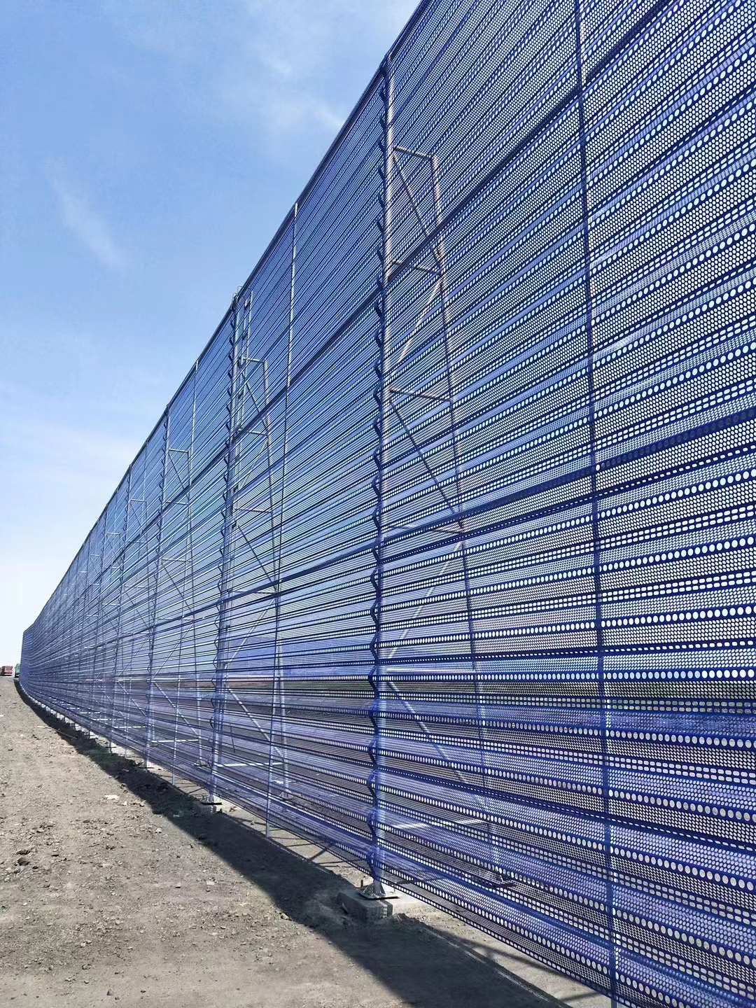 煤田防風(fēng)網(wǎng)的質(zhì)量是重要的。工地防風(fēng)抑塵網(wǎng)一次投資,長期受益。擋風(fēng)抑塵墻設(shè)置后不僅使污染嚴(yán)重的地區(qū)環(huán)境得到有交的改良,而且實施擋風(fēng)抑塵墻的煤場每年還節(jié)省煤數(shù)千噸,在取得良好社會效益的同時又獲得了大的經(jīng)濟效益,美觀整齊的擋風(fēng)抑塵墻也成為這些地區(qū)-道怡人的風(fēng)景線。涂彩防風(fēng)抑塵網(wǎng)此產(chǎn)品采用金屬原材料經(jīng)機械組合模具沖孔、壓制、噴塑而成,具有強度高、韌性好、抗彎曲、抗老化、抗阻燃、耐高低溫、耐酸堿、 承受彎曲變形能力強等優(yōu)良性能;經(jīng)過特殊配方和工藝制作,可根據(jù)用戶需要制成各種厚度、顏色,具有使用壽命長、色彩鮮艷不易褪色等特點;綜臺抑塵效果良好,優(yōu)于國內(nèi)外同類產(chǎn)品。