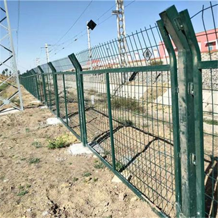 鐵路防護柵欄也叫鐵路護欄網、鐵路防護網、鐵路防護柵欄,是金屬網片防護柵欄的樣式之一,主要作用與鐵路倆側防止防止行人、車輛穿越,保障行車安全的作用,防護柵欄的結構是由金屬網片、鋼筋混凝土立柱組成。