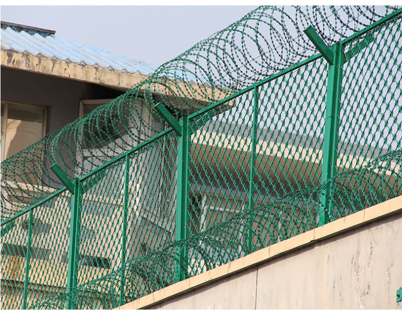 巡邏隔離網由:鋼絲網片、立柱、刀片剌網組成。