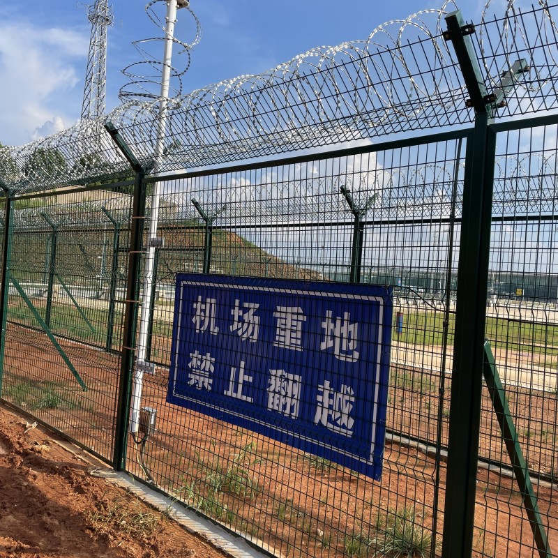機場飛行區圍界多由Y型立柱+鋼筋焊接網片+蛇腹式刀刺網組合而成,大多數時候叫做機場鋼筋網圍界、機場鐵絲網圍界或者機場防護網,但是這類防護網不只是應用在機場。由于這種鋼筋網結構有很好的隔離和防攀爬功能,可以應用在很多地方,例如廠區、園林、軍事、邊防等等。安平縣艾瑞絲網生產的機場圍界網,專注于高質量、高全性,隨著市場的不斷更新迭代,我們出品了多款機場鋼筋網圍界,滿足不同地域、不同級別、不同環境的需求。