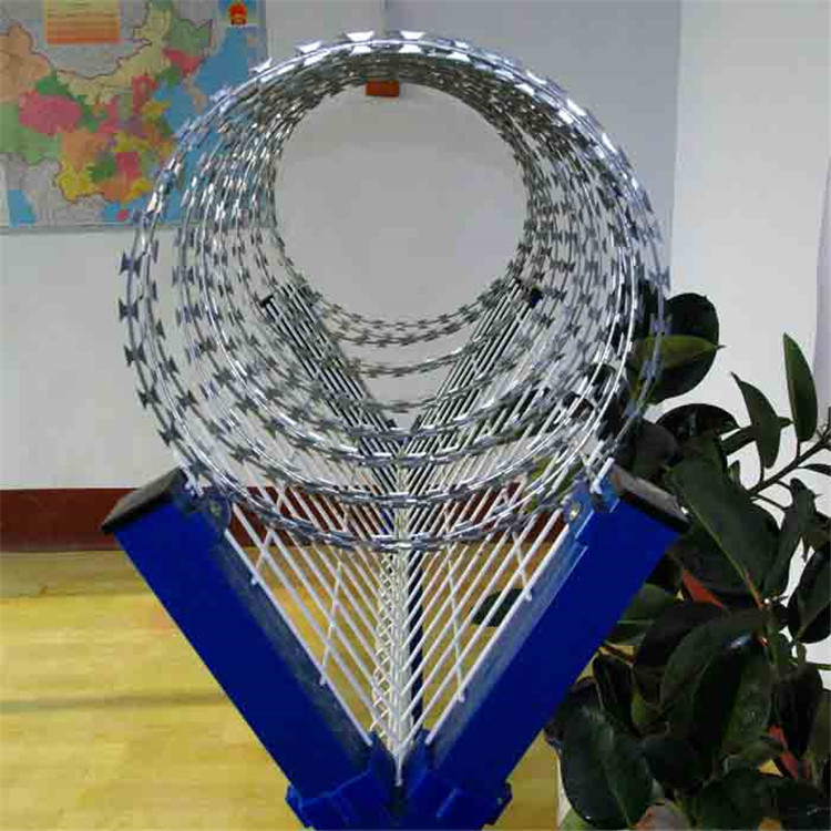 的低碳鋼絲、鍍鋅、涂塑、噴塑熱鍍鋅刺繩防腐形式:電鍍、熱鍍。 規(guī)格(安裝方法不同):1.(蛇腹式) 螺旋式刀片刺繩;2.直線型刀片刺繩;3.平板式刀片刺繩;4.刀片刺繩焊接網(wǎng):螺旋型、直線型、螺旋交叉型三種形式。熱鍍鋅刺繩特點:1.具有美觀、經(jīng)濟實用、防阻效果好、施便利防護性能好2.具有可靠的保護功能造價低,主要是低碳鋼絲之間的擰接3.安裝方便快捷,只是簡單安裝就可該產(chǎn)品具有嚇阻效果好、美觀、施工便利,經(jīng)濟實用熱鍍鋅刺繩用途:用于許多國家的工礦企業(yè)、園林公寓、邊防哨所、軍事領(lǐng)域、廠區(qū),私人別墅,小區(qū)樓房一樓,工地,銀行,印鈔廠,軍事機地,平房,低墻等地的防盜,居民區(qū)各種管道防爬使用。