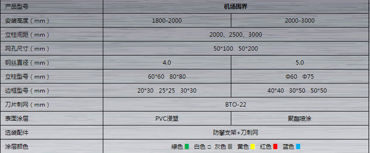 特點:如果在機場護欄網(wǎng)頂部加裝刀片刺絲、刀片刺繩后又很好的增強了安全防護性能。采用電鍍、熱鍍、噴塑、浸塑等防腐形式,具有很好的抗老化、抗曬、耐候等特點。其產(chǎn)品造型美觀、花色多樣,既起到圍欄作用,又起到美化作用。由于具有安全性高、防攀爬能力好,網(wǎng)片連接方式采用特制SBS緊扣件,有效防止人為的破壞性拆卸,橫向四道折彎加強筋,使網(wǎng)面強度顯著增加。