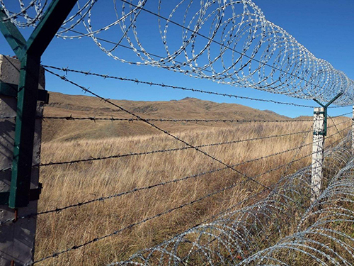 2012年*新《鐵路線路防護(hù)柵欄》[通線(2012)8001]通用參考圖出爐! 文獻(xiàn)規(guī)定:鐵路柵欄一改往日焊接鋼絲網(wǎng)柵欄、刺絲網(wǎng)柵欄等產(chǎn)品,改為防御性更強(qiáng)、壽命更長(zhǎng)久的:鋼筋混凝土柵欄+0.5米高刺絲滾籠的防護(hù)柵欄。詳細(xì)內(nèi)容如下: 鋼筋混凝土柵欄:詳見(jiàn)圖紙 0.5米高刺絲滾籠組成:刺絲刺繩+刀刺滾籠+鋼絲+立柱 圖集中:5、刺絲滾籠:(1)刺絲滾籠采用刀片刺繩繞圈后相鄰兩圈每隔120度用刺絲連接卡固定,張開(kāi)后形成蛇腹網(wǎng)狀,閉合后刀片刺繩卷徑為50cm,張開(kāi)后每交叉圈安裝間距20cm,直徑不小于45cm。(2)刀片刺繩由沖切鋼板采用機(jī)械軋?jiān)阡摻z上成型,刀刺寬度22mm,刀刃垂直間距15mm,刀刺縱向間距34mm,芯絲直徑為2.5mm。刀片厚度0.5mm的Q195鋼板網(wǎng)沖切制作。芯絲由HPB300 -6.5mm高線鋼絲冷拔加工。