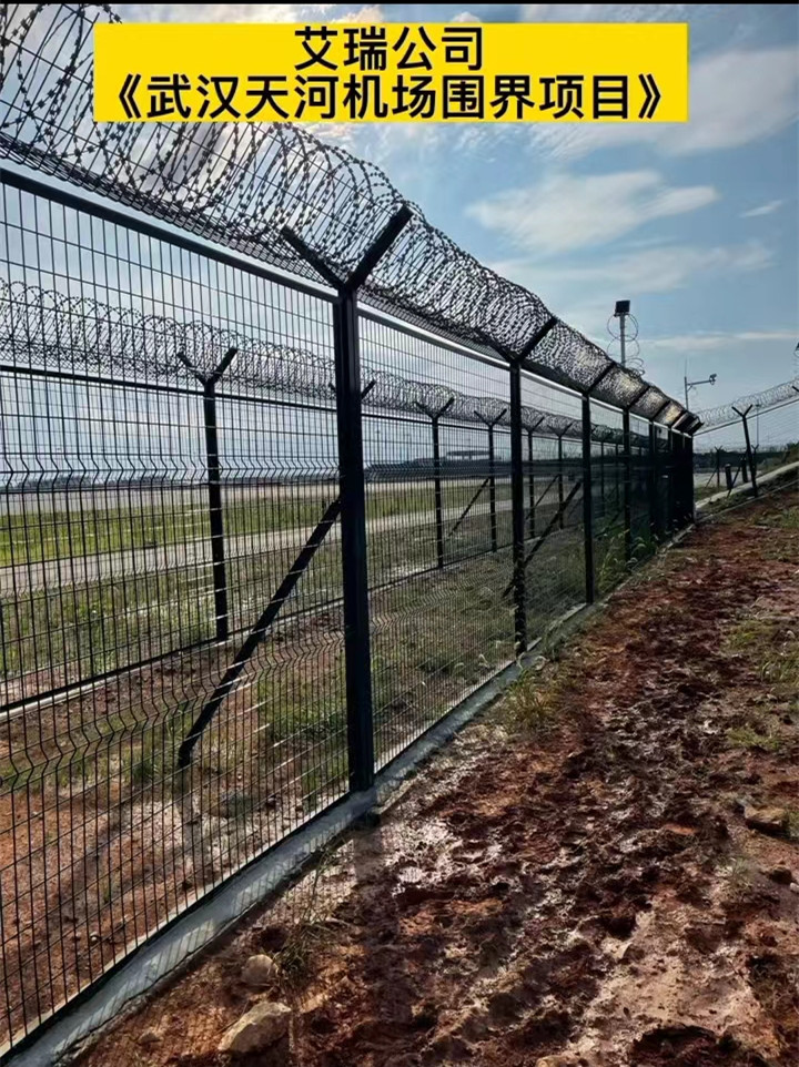 機(jī)場(chǎng)圍界又稱作“機(jī)場(chǎng)護(hù)欄”、"Y型安全防御護(hù)網(wǎng)”, 它是由V型支架立拄 ,加強(qiáng)型焊接片網(wǎng),安全防盜連接件和熱鍍鋅
